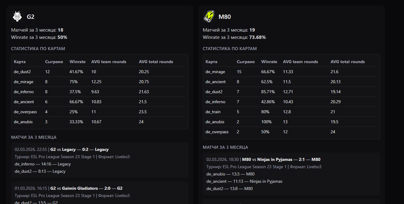 Я постепенно становлюсь фанатом команды M80, ибо они мне просто везут кэфы как на день Благодарения, но тут у нас G2 команда которая играет, и имеет хороший бэк за плечами, поэтому я быт тут аккуратно, взял бы фору в +1.5 по 1.6 на М80 и спал бы спокойно, мап пул у пацанов одинаковый плюс минус, отсюда можно потянуть еще ТБ 2.5 больше по 1.95.